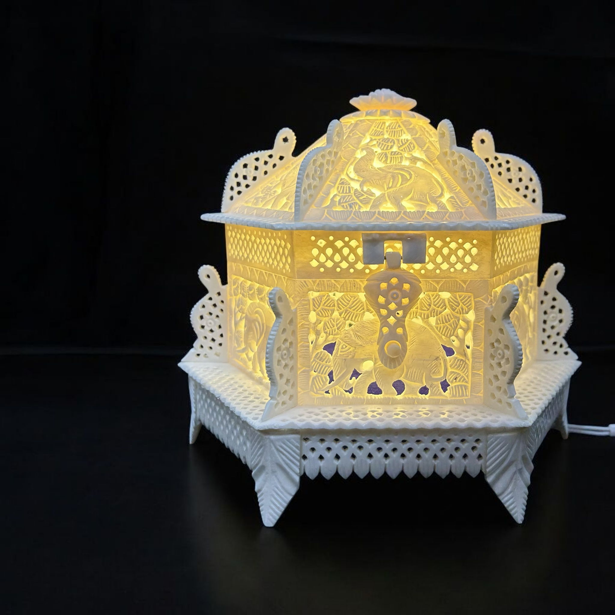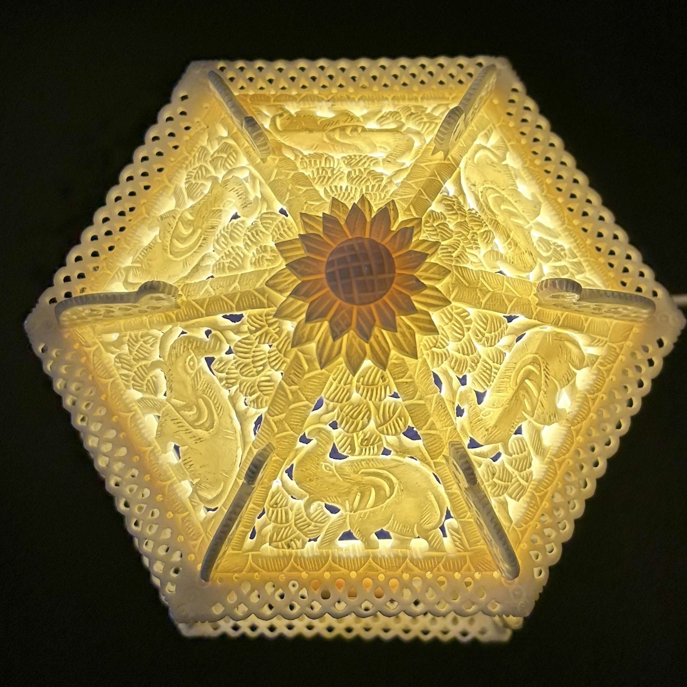 Design: A fusion of heritage and modern elegance, casting a soft, warm glow through fine carvings.